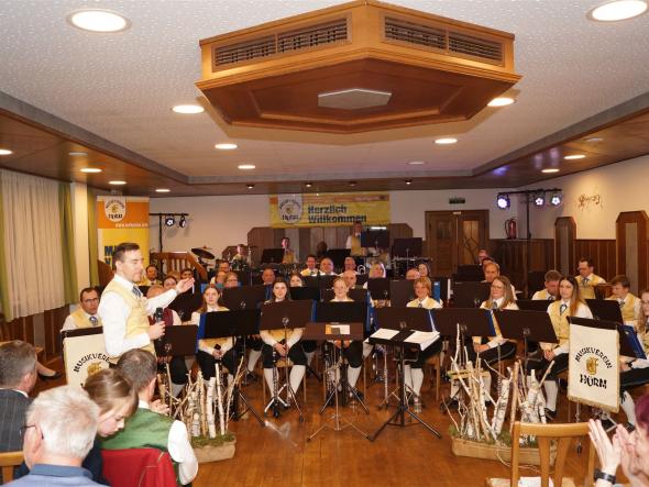 Wir proben regelmäßig und treten bei verschiedenen Anlässen auf, wie zum Beispiel bei Festen, Frühschoppen, Konzerten oder Bewerben.
