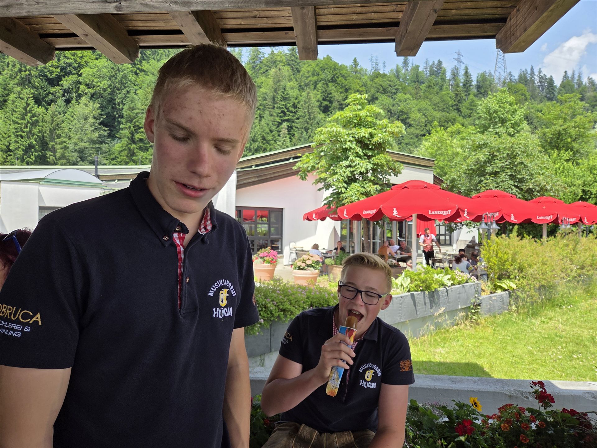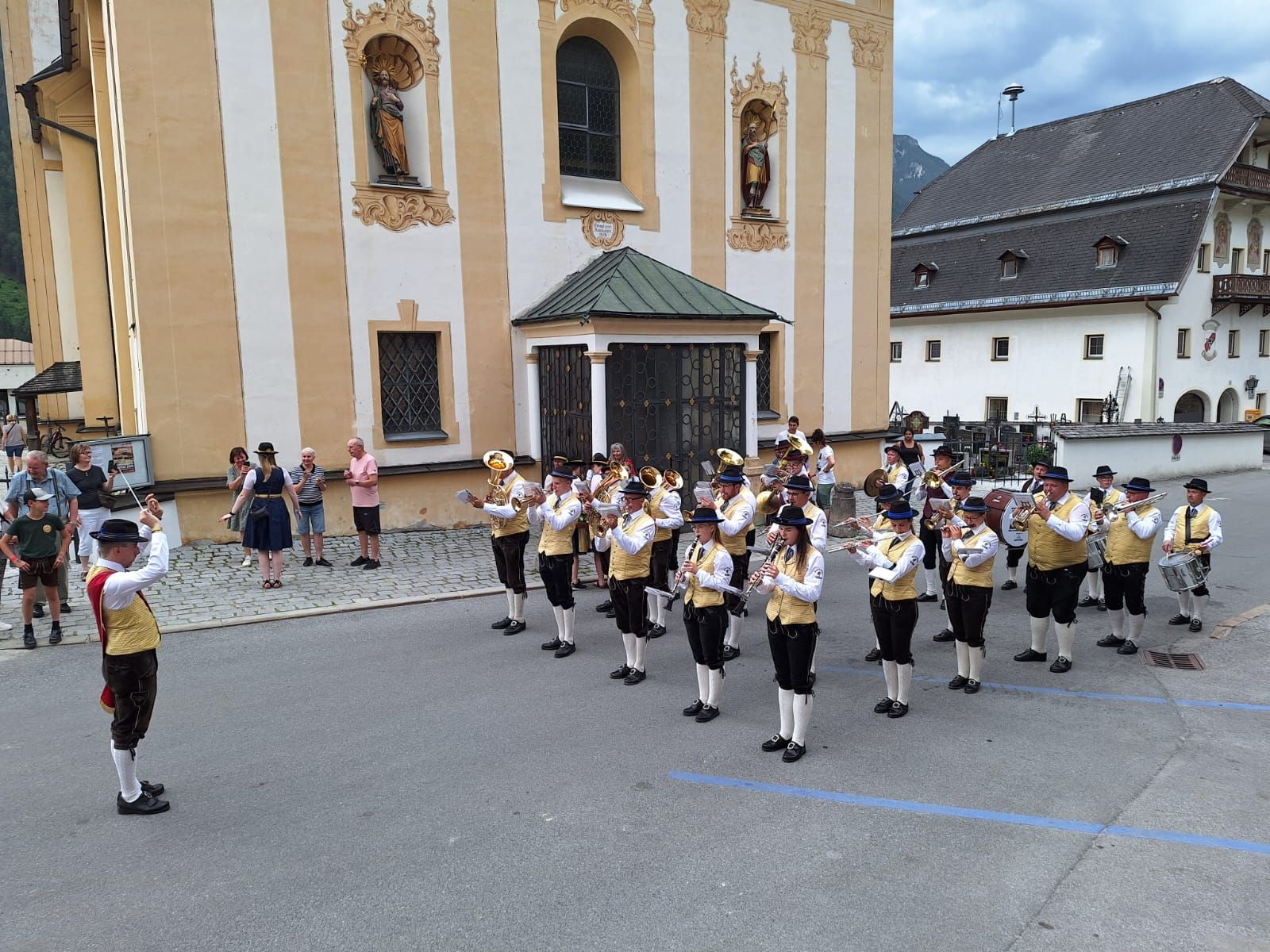 Am Sonntag gestalteten wir musikalisch die Heilige Messe mit, die unter freiem Himmel gefeiert wurde. Im Anschluss marschierten wir gemeinsam mit weiteren Kapellen durch den Ort zum Pavillon, wo das Fest weitergeführt wurde.