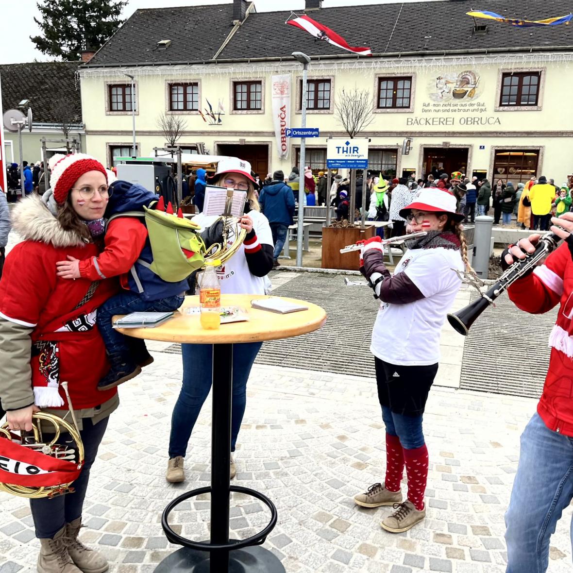 Neben der musikalischen Umrahmung waren wir heuer auch mit einem eigenen Verkaufsstand beim Hürmer Faschingsumzug dabei. Mit kleinen Schmankerln und erfrischenden Getränken konnten wir viele Besucherinnen und Besucher verwöhnen.